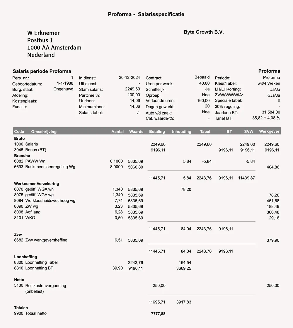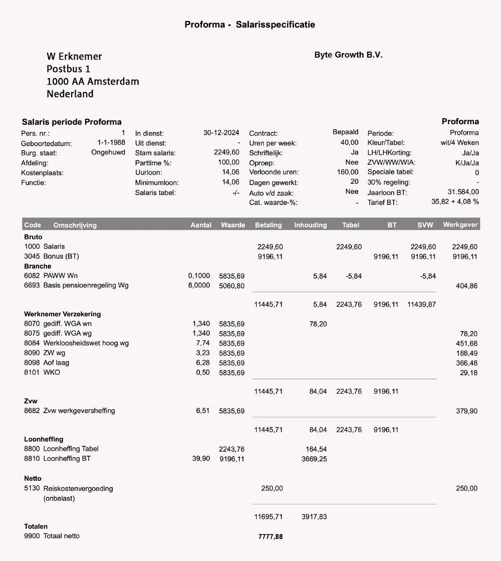 Van het afgesproken tarief wordt 90% gereserveerd als jouw beschikbare inkomen. Dit is meer dan alleen je nettoloon; het omvat ook: